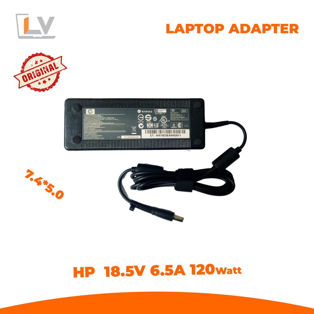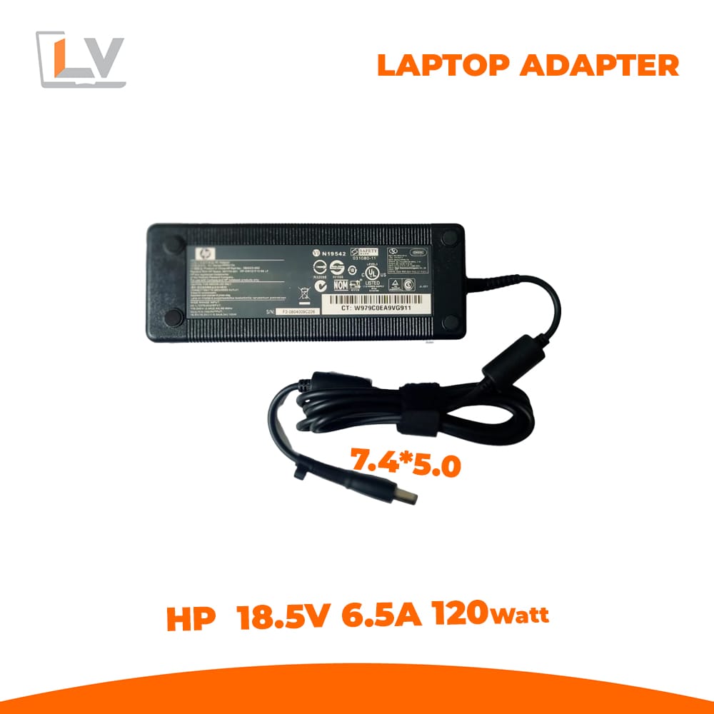Check the original adapter label on your HP laptop — it should read “Output: 18.5 V 6.5 A” or very close.